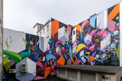 Die Art und Weise, die STADT zu erwähnen, sie zu kritisieren und die urbanen Bände als abstrakte Komposition zu malen, ist der Weg zu unterschiedlichen Medien, von der Malerei über die Bildhauerei bis hin zur Installation. Jetzt arbeite er in seinem Atelier in Turin und reist viel für Wandmalereien und Galerieausstellungen.